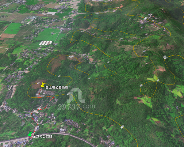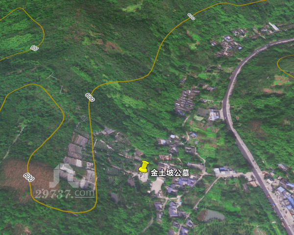 金土坡公墓横龙结穴,来龙主峰高约700米,公墓主峰高约610米呈东北西南走向。
