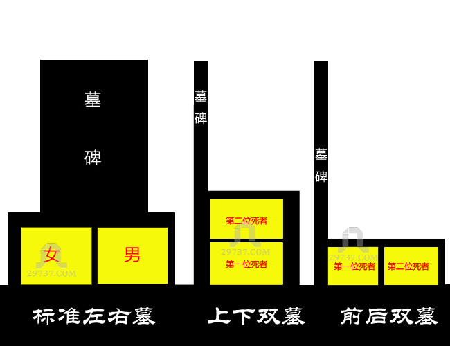 7、墓制 标准的是左右墓、少有的前后墓;乱制的上下墓。壁葬、地宫不建议选择!不管怎么样人来自泥土、回归泥土才是真谛!