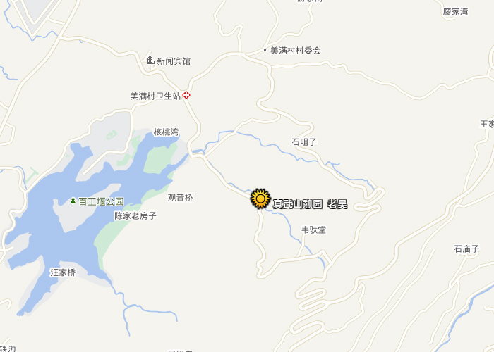 真武山憩园给你水口在戌方百工堰,百工堰海拔约490米。水流向为右水倒左入库于百工堰。