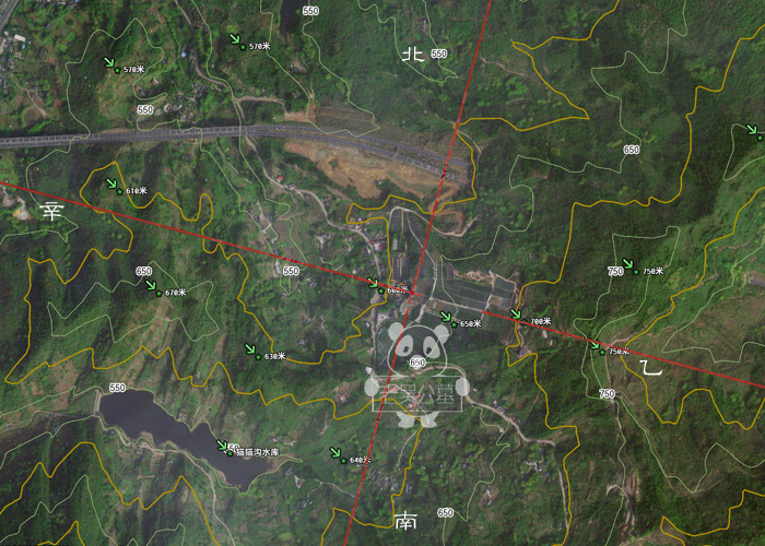 燃灯寺公墓以中间神道为基准线是乙山辛向、600米线墓区案山为610米。