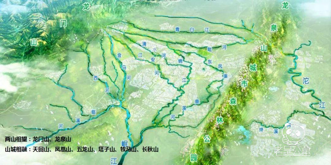 成都西区山脉自东北朝西南以龙门山脉和邛崃山脉为主,和龙泉山脉走向异曲同工,被誉为“左青龙,右白虎”之称。