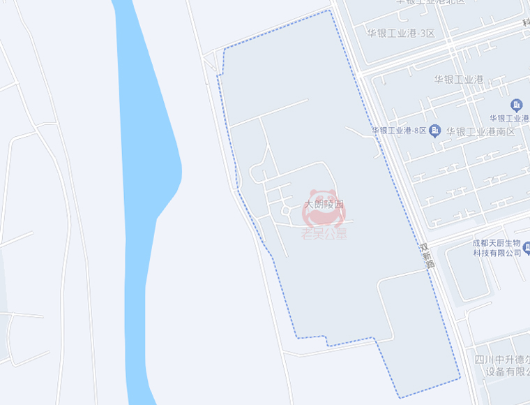 成都陵园西门公墓坐山和墓区示意图,西门公墓有大朗陵园、白塔山公墓、金土坡公墓、味江陵园、宝山塔陵园和卧佛山公墓。