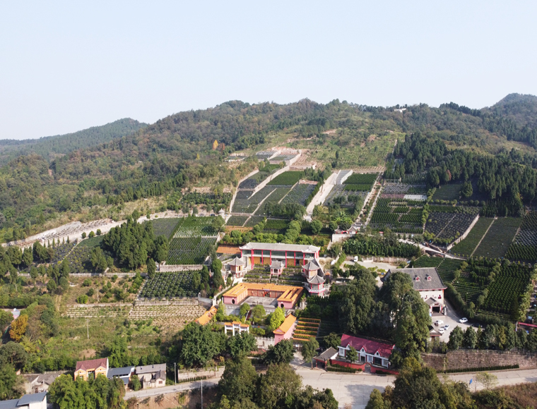 成都洛带望场坡燃灯寺公墓坐落于海拔750余米的龙泉山脉中段同安双溪小学旁。燃灯公墓以坐东、东南为主,前望成都市区。燃灯寺公墓地处成都东大门,整个墓区介于海拔600至700米之间。