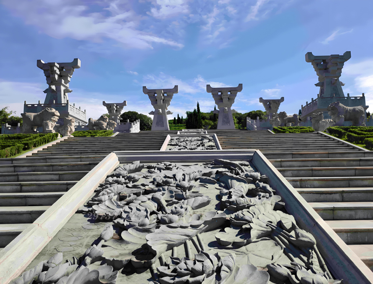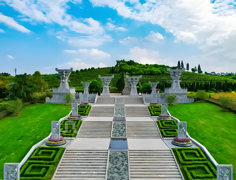 双流莲花公墓建有“忠孝”牌坊、二十四孝文化长廊、川西民俗文化墙、文化地雕、叠水莲池、八角亭等人文艺术景观,各类花岗石深浮雕墙、浅浮雕围栏遍布园区,散发着浓郁的人文生态气息。